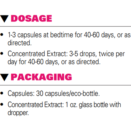 RECOMMENDED USAGE: Take at bedtime for 30-75 days, or as directed. For the most part, four bottles may be needed to complete the program. Increase the amount of liquids you drink each day while taking this product. Pregnant women/children: consult with a health practitioner before use.Â