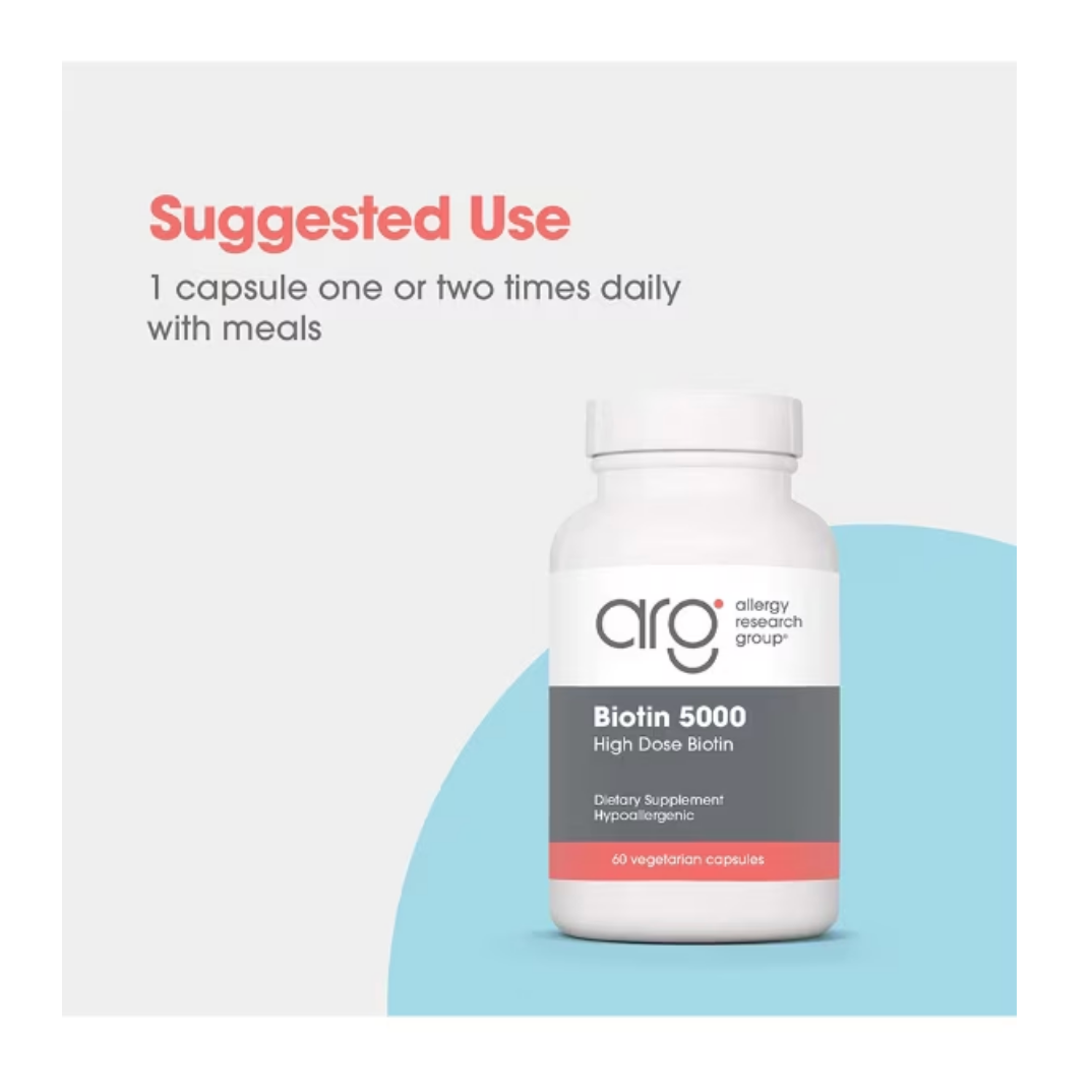 Biotin 5000 delivers 5000 mcg of biotin to support cellular energy production, fat and glucose metabolism, and the structural health of skin, hair, and nails.* This essential B vitamin plays a key role in converting food into energy and supporting keratin synthesis, ideal for individuals seeking metabolic support or enhanced aesthetic health.*