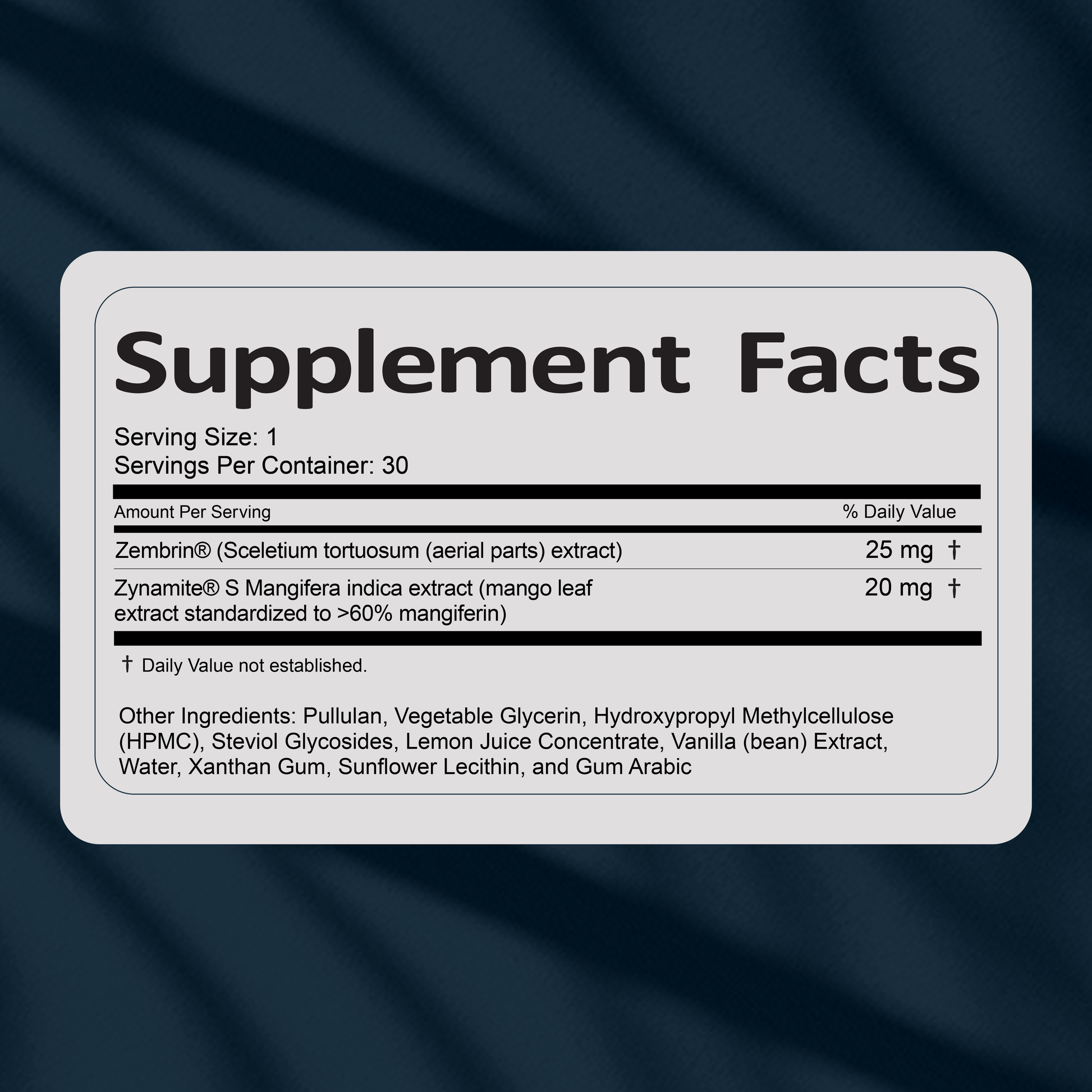 Calm is a dissolvable honey tea-flavored strip for anxiety relief, mental focus, mood and stress support that has an instant calming effect the moment you place it on your tongue. Formulated with Zembrin® and Zynamite® – two clinically studied ingredients for anxiety, mood and mental resilience – Calm offers a natural, non-sedative approach to calming your nervous system the moment stress hits.