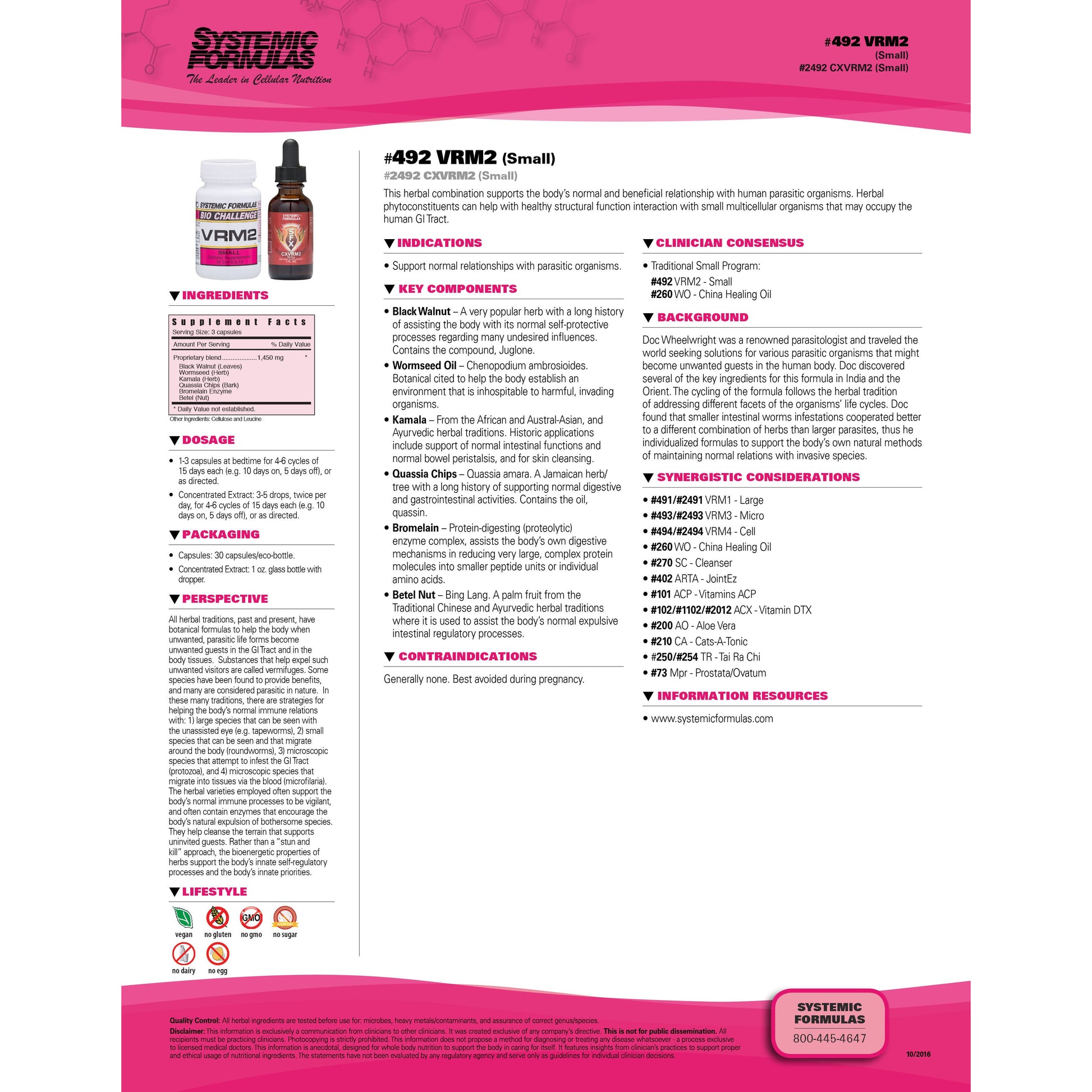 As with any cleansing program, the elimination system must be kept open; drink at least 2 quarts of water daily. In rare cases, aching may result; soaking in an Epsom Salt bath will usually reduce this condition. Usually, a bottle of formula #6 and/or DSIR is recommended after completing the VRM program to assist in tissue healing. Do not begin any VRM program unless the person plans to complete it entirely.