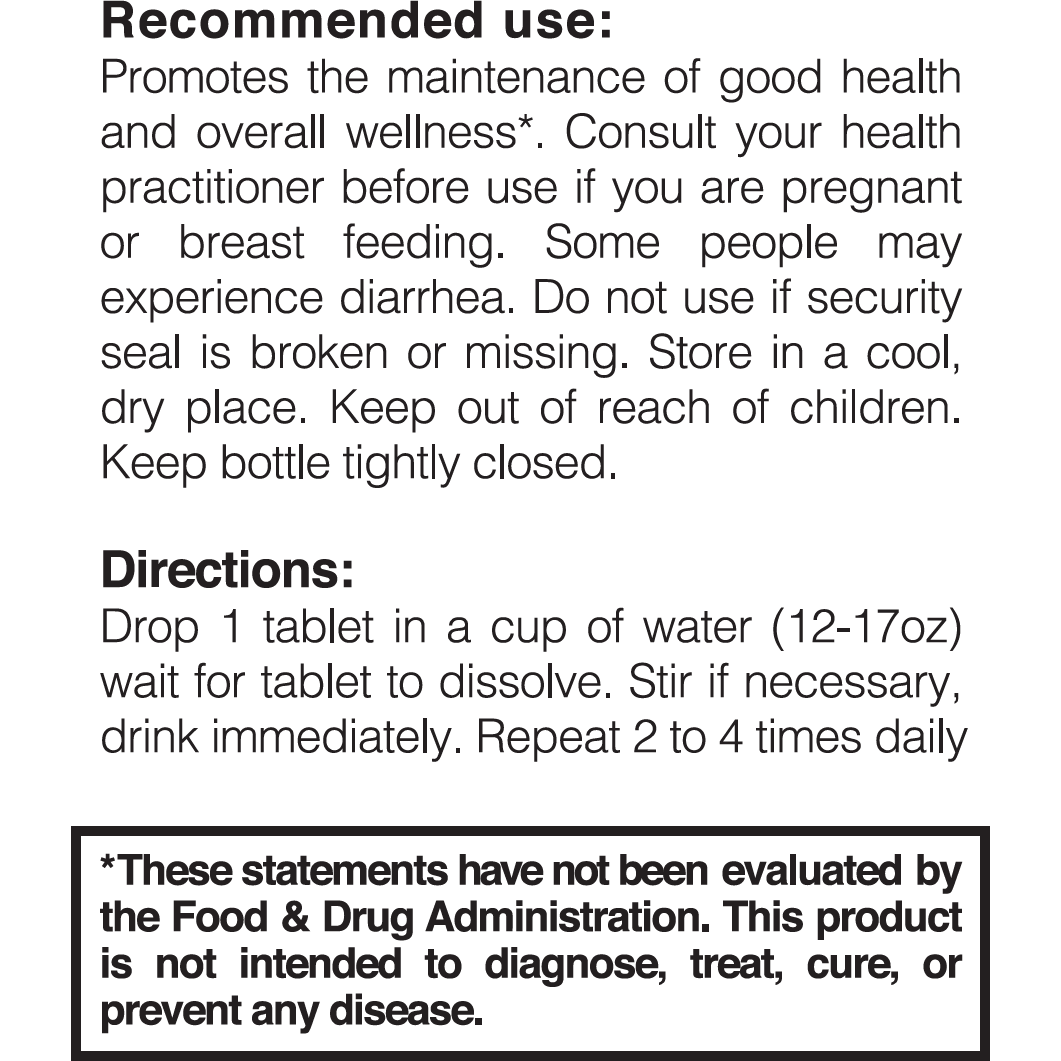 Drop one tablet in a cup of water (12-17 oz), wait for the tablet to dissolve. Stir if necessary, drink immediately. Repeat 2 to 4 times daily.