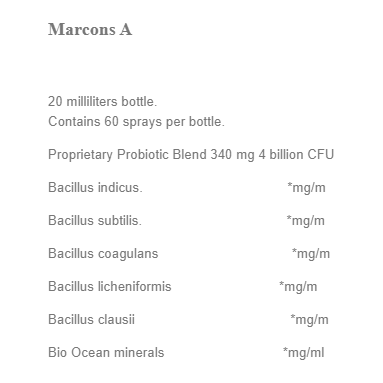 Marcons A - 20ml spray- Marcons A is a probiotic vertical spray.Â