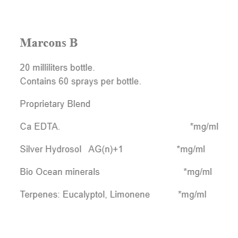 Marcons B - 20ml spray-Â is a colloidal silver / EDTA / Eucalyptol Terpene nasal spray combination.