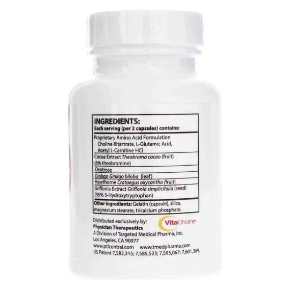 Choline Bitartrate, Cocoa Extract, Glutamic Acid, Acetyl L-Carnitine HCL, Whey Protein Isolate (Milk), Dextrose, Ginkgo Biloba, Hawthorne Berry, Griffonia Seed
