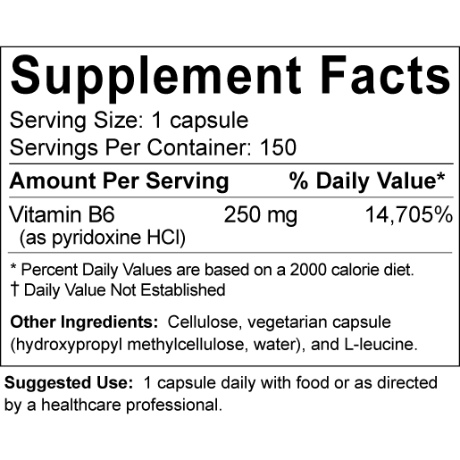 Vitamin B6, also known as pyridoxine, helps with brain function, helps the body convert protein to energy, and plays a role in the production of some hormones and neurotransmitters. Research has shown that vitamin B6 works with folic acid and B12 to reduce levels of homocysteine (an amino acid) in the blood.Â
